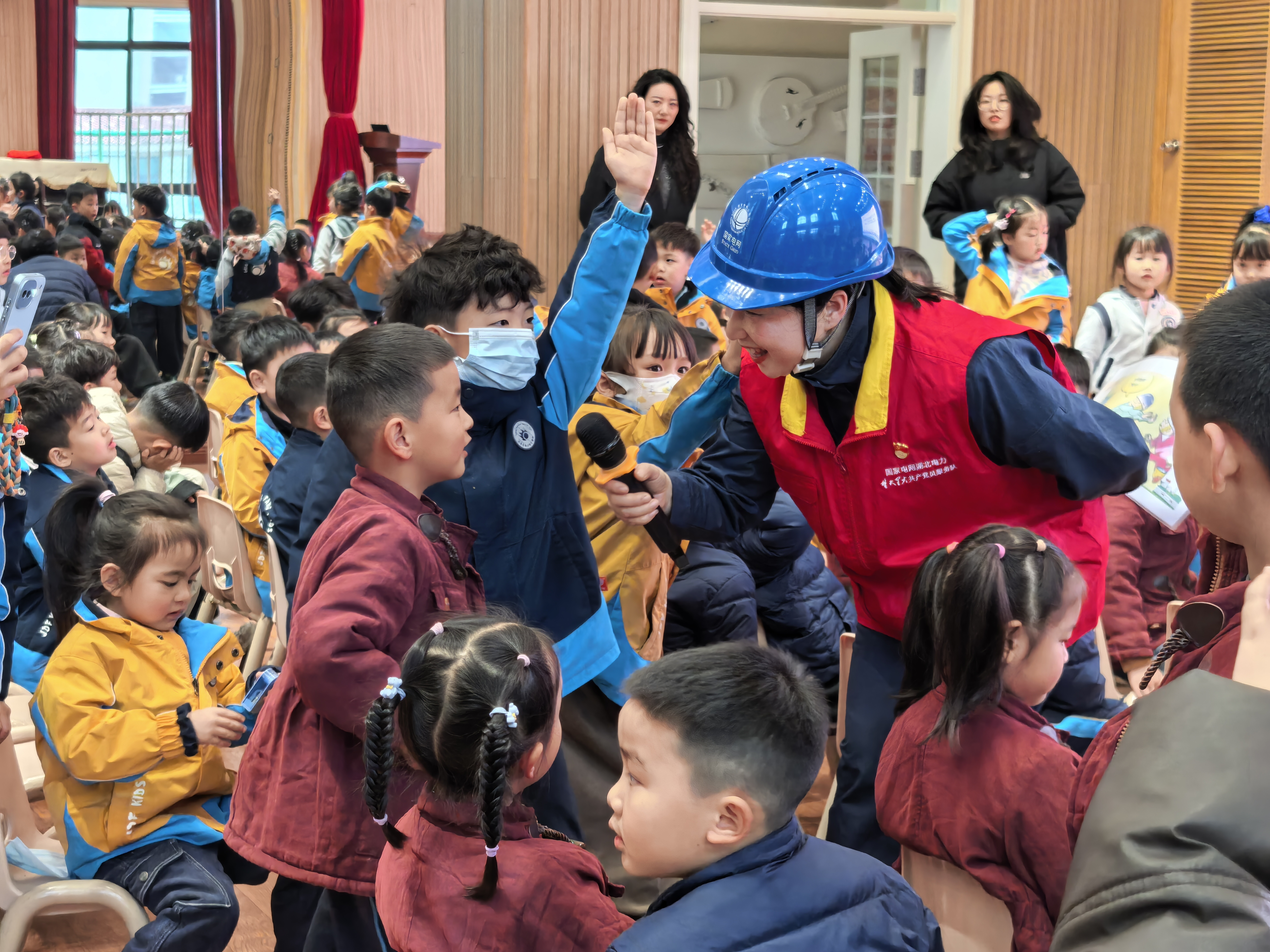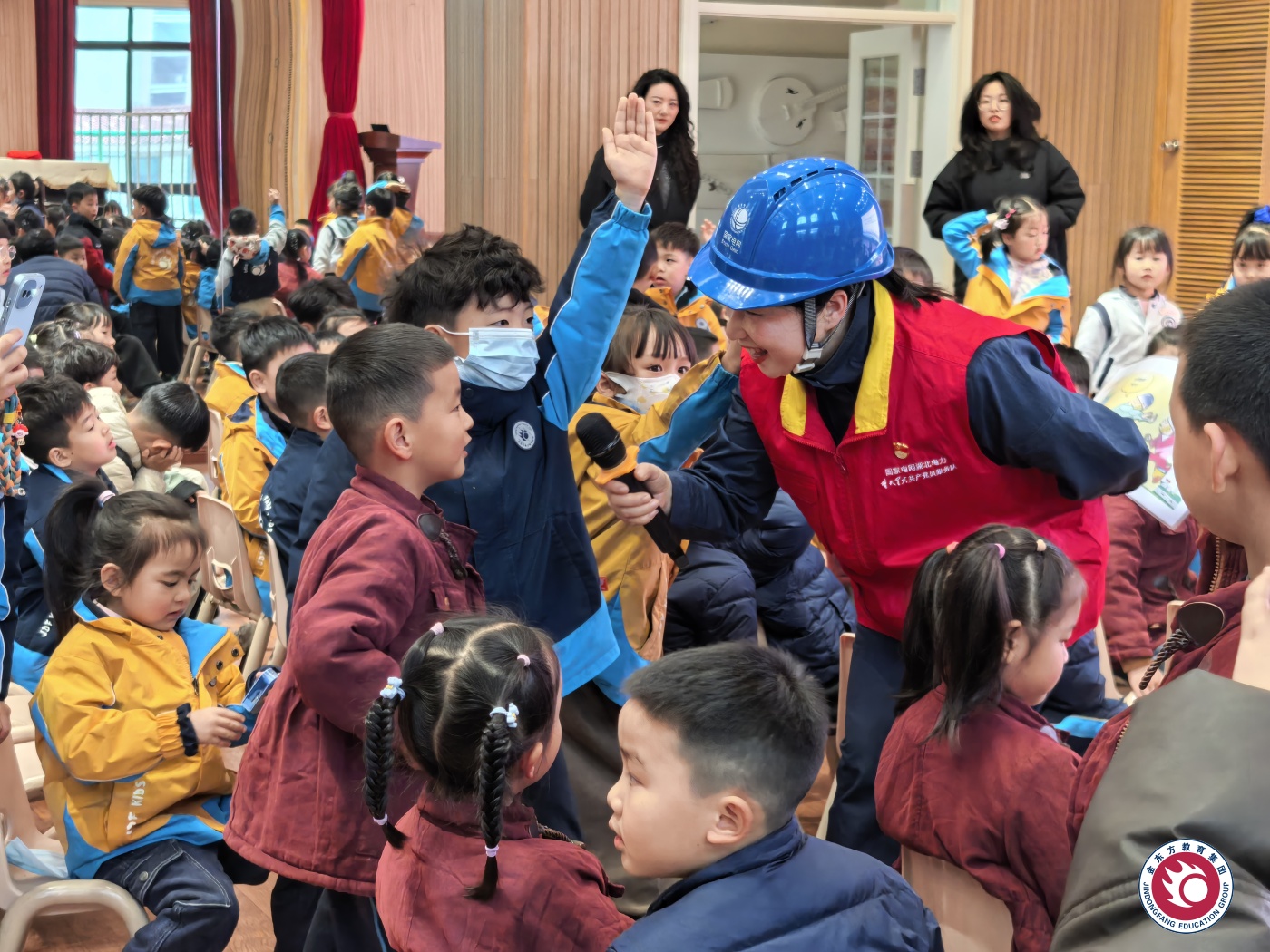 3月19日,金东方幼儿园大班年级开展了一场安全用电主题教育活动。来自KD1班的家长义工携国家电网6位工作人员走进幼儿园,通过专业知识讲解与互动体验,帮助孩子们树立安全用电意识,掌握基础的自我保护技能。